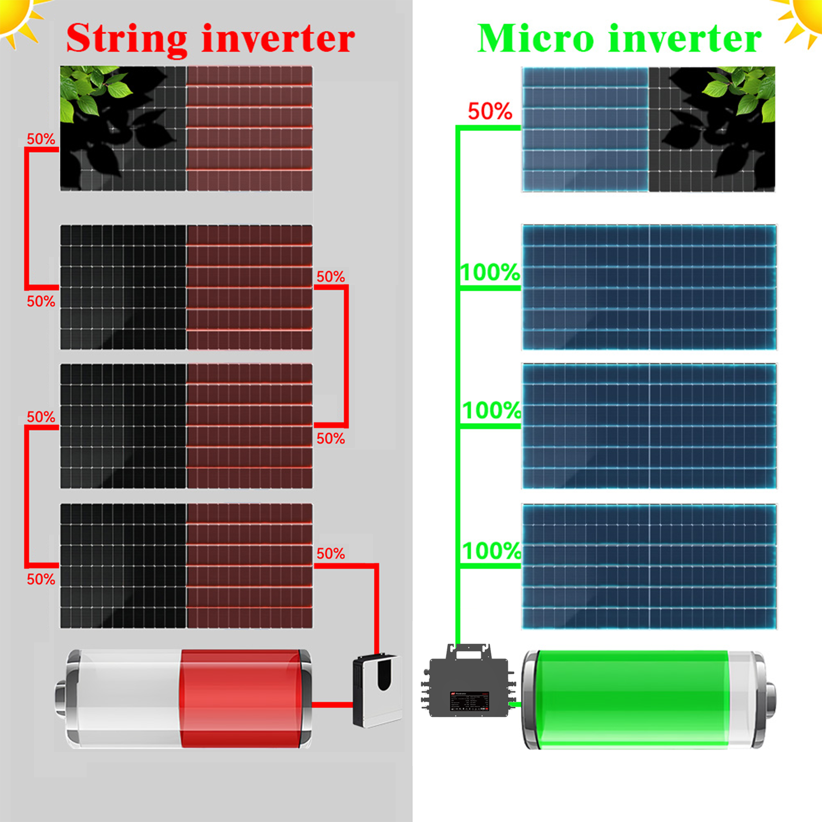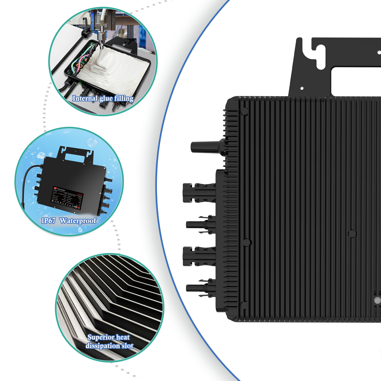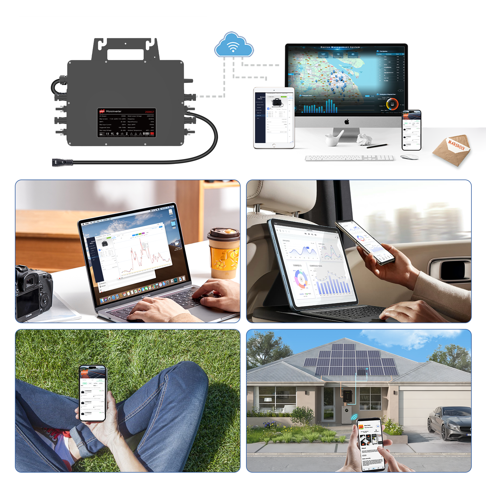 G7 series micro inverters is suitable for rooftop PV systems. The 4-channel independent photovoltaic monitoring and MPPT tracking in the device can maximize the energy harvest of PV system and avoid the energy loss from the mismatching and uneven illumination between each panel. The wifi communication in the system enables the individual panel status monitoring and is convenient for system maintenance.